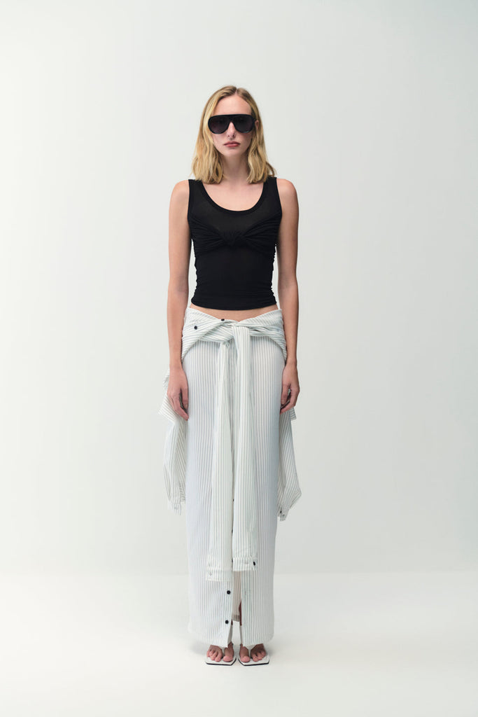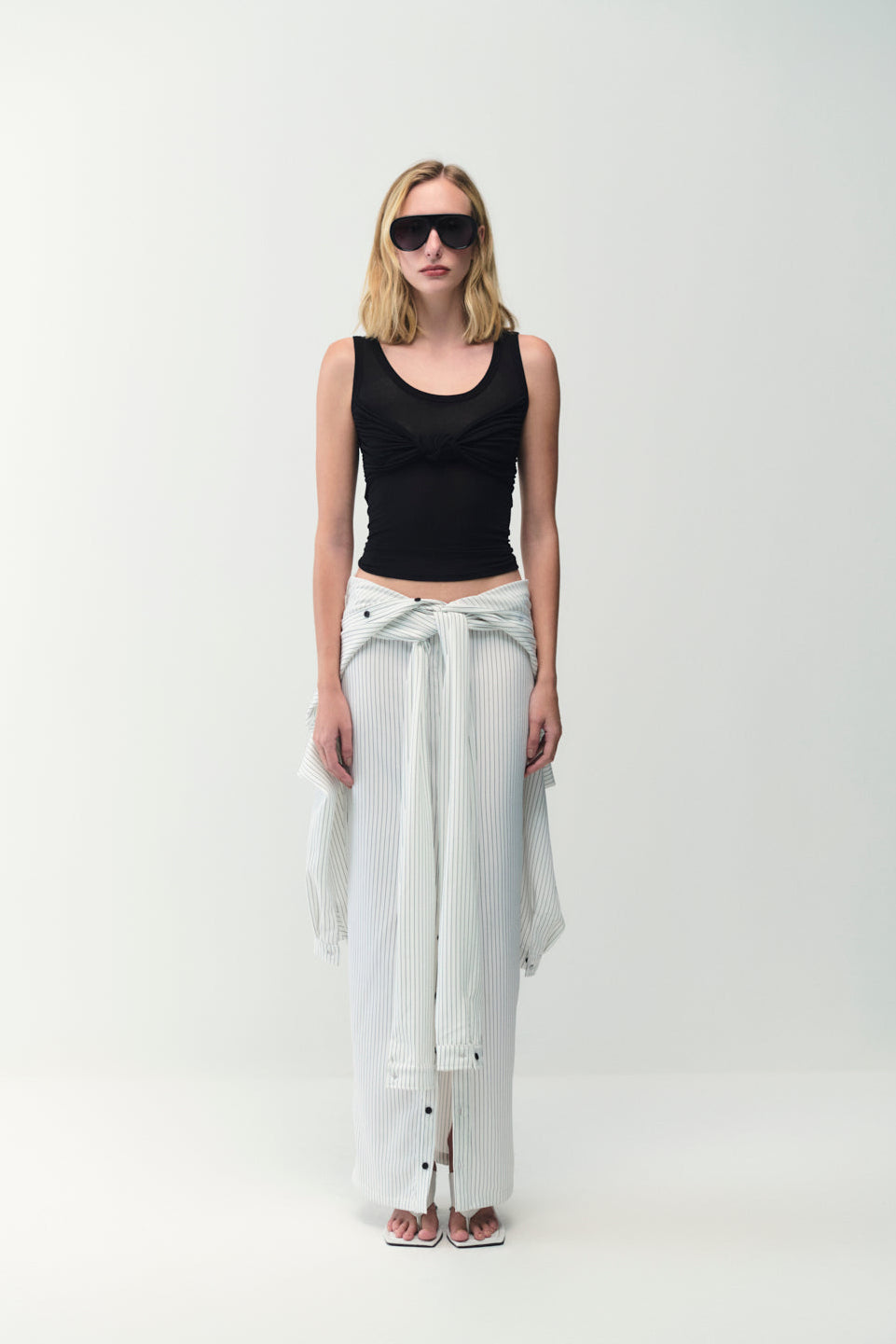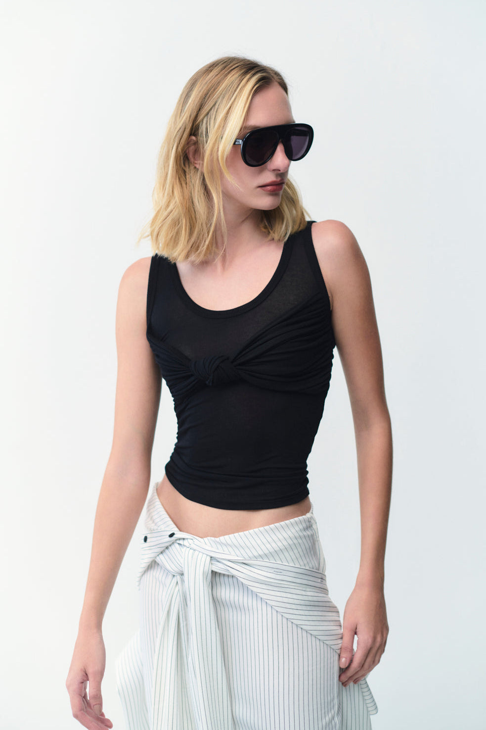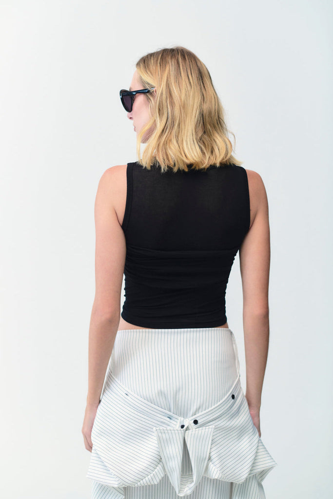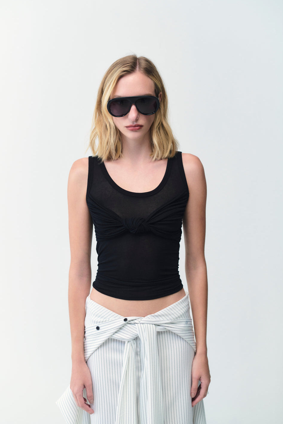 REGATA PRETA COM DETALHE DE NÓ NO BUSTO