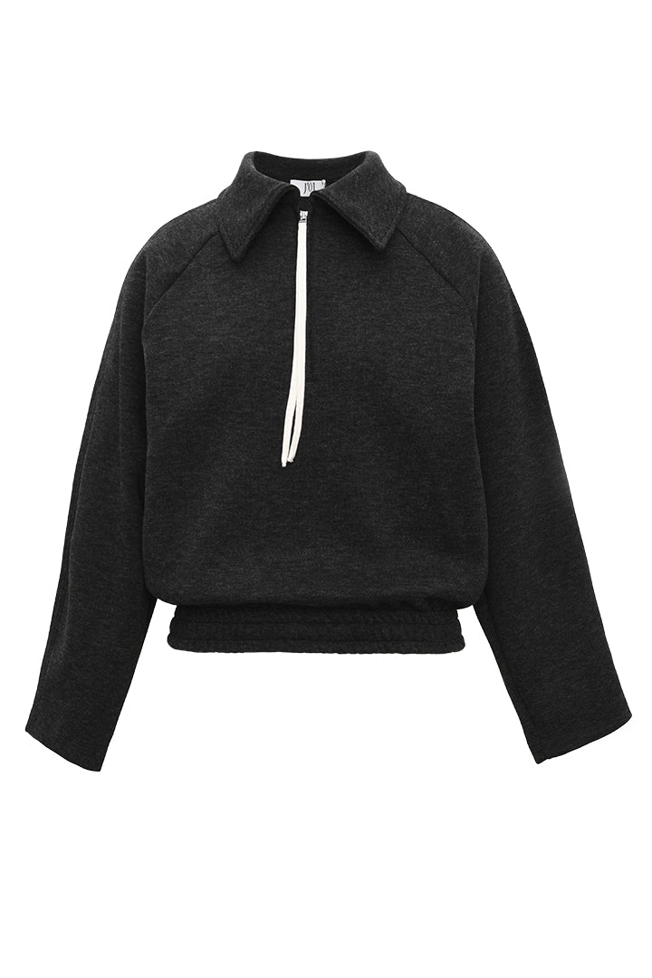 CASACO DE MOLETOM CINZA ESCURO OVERSIZED COM GOLA E CORDÃO PARA REGULAR