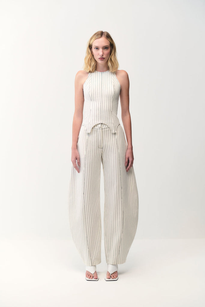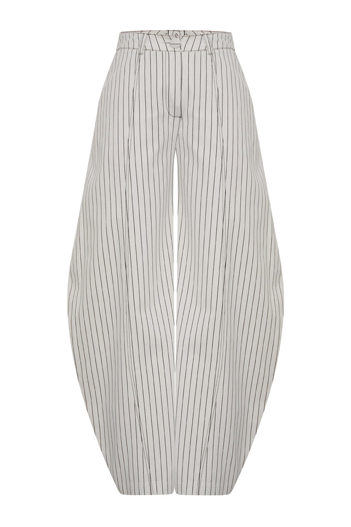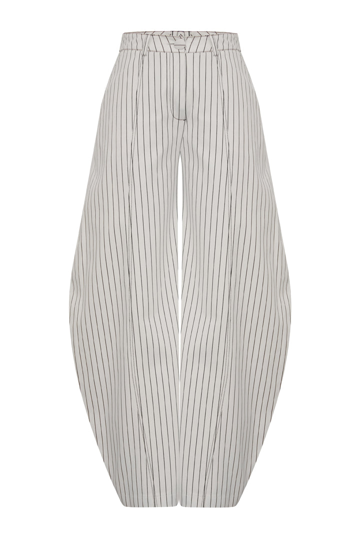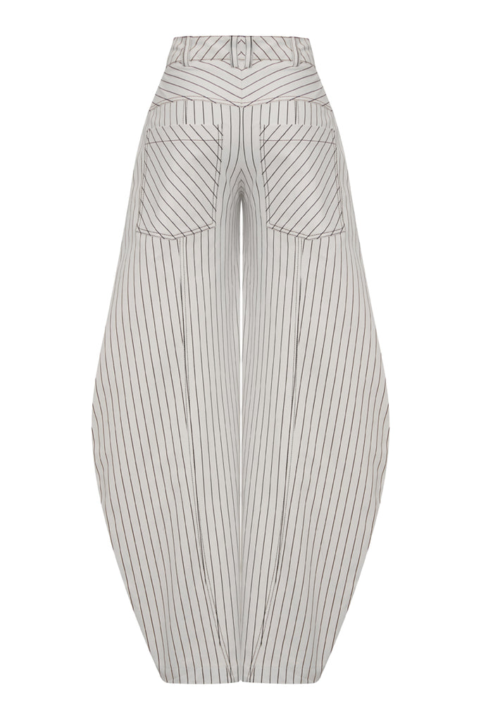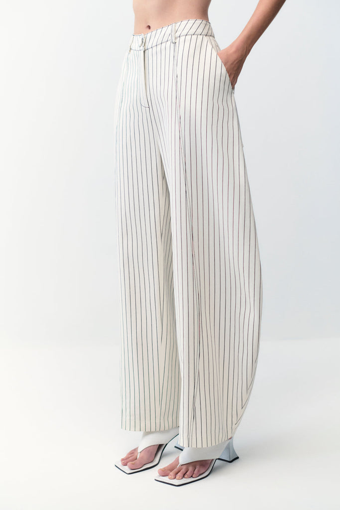 CALÇA DE ALFAIATARIA BRANCA BALLOON COM LISTRADA COM PESPONTO