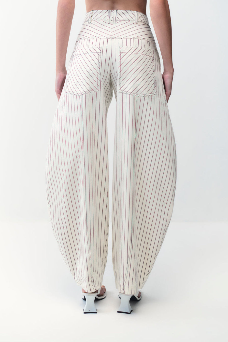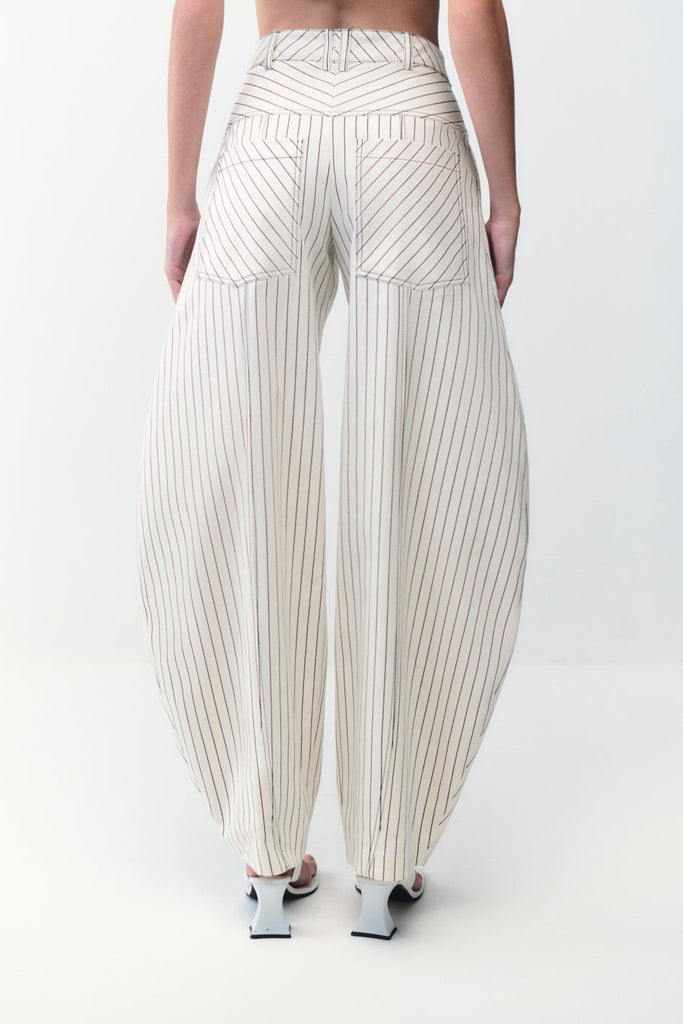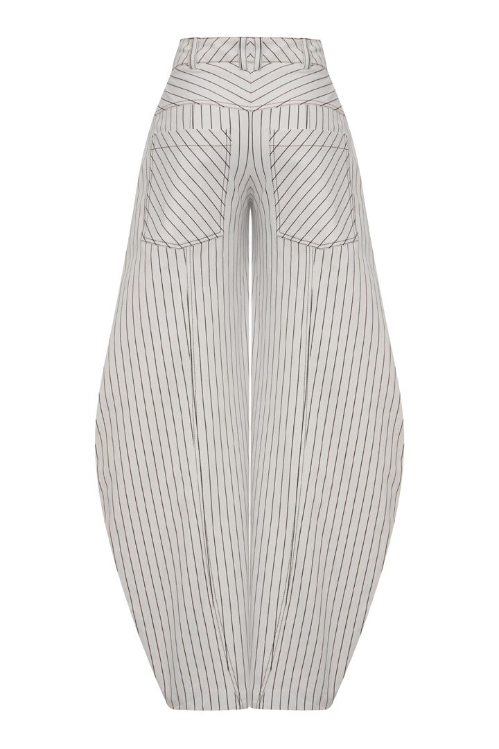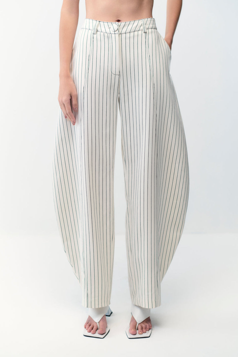CALÇA DE ALFAIATARIA BRANCA BALLOON COM LISTRADA COM PESPONTO
